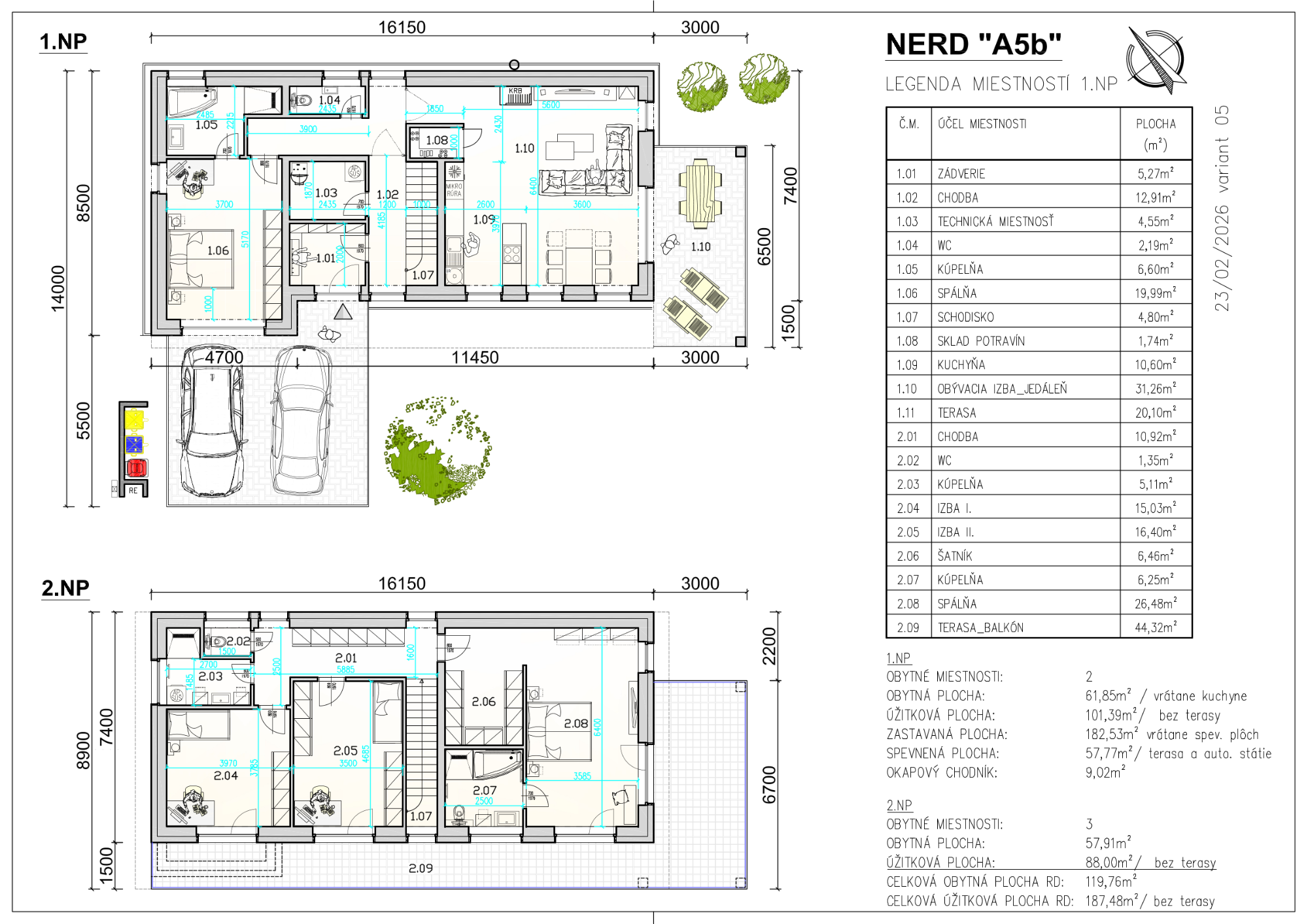 | Výmera pozemku | 450-660 m2 |