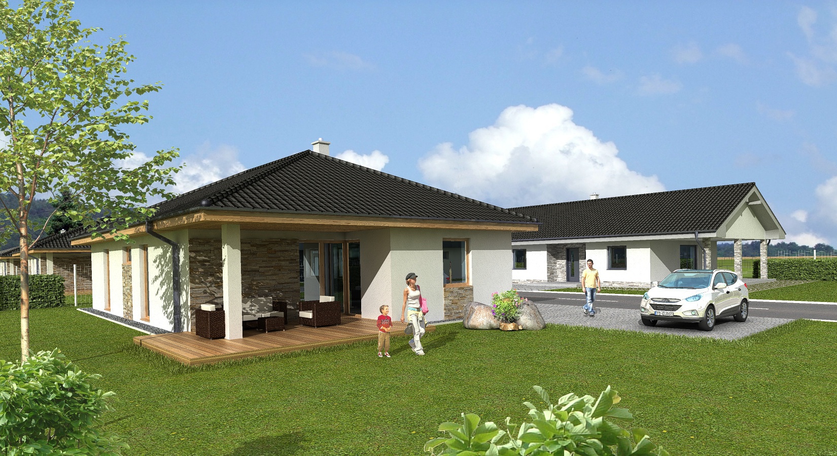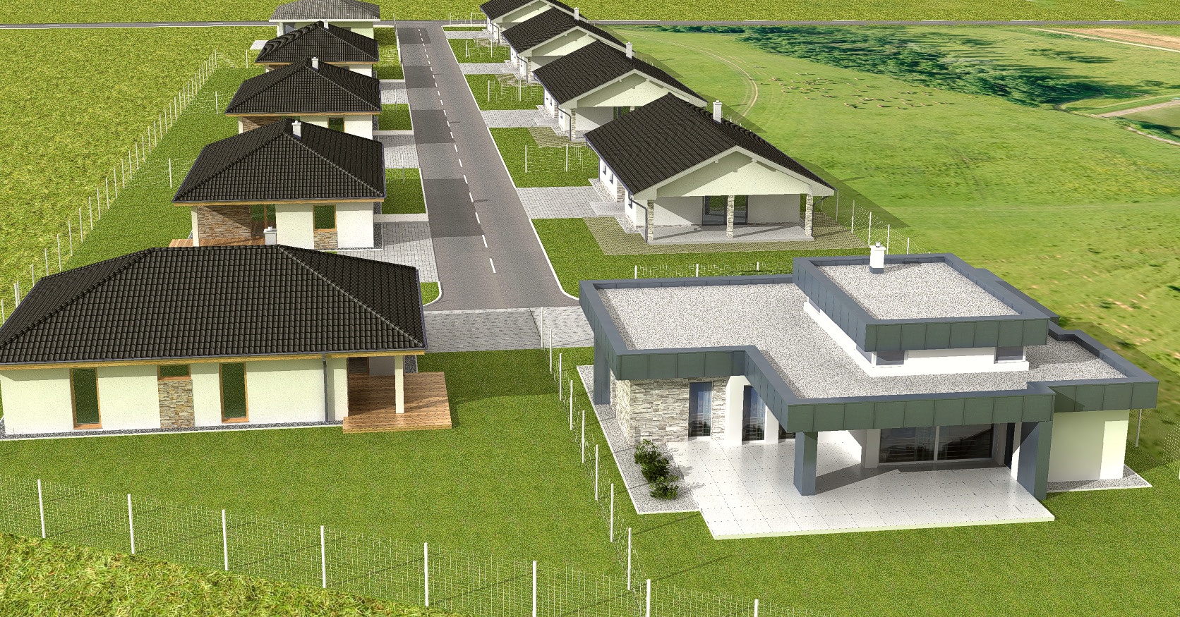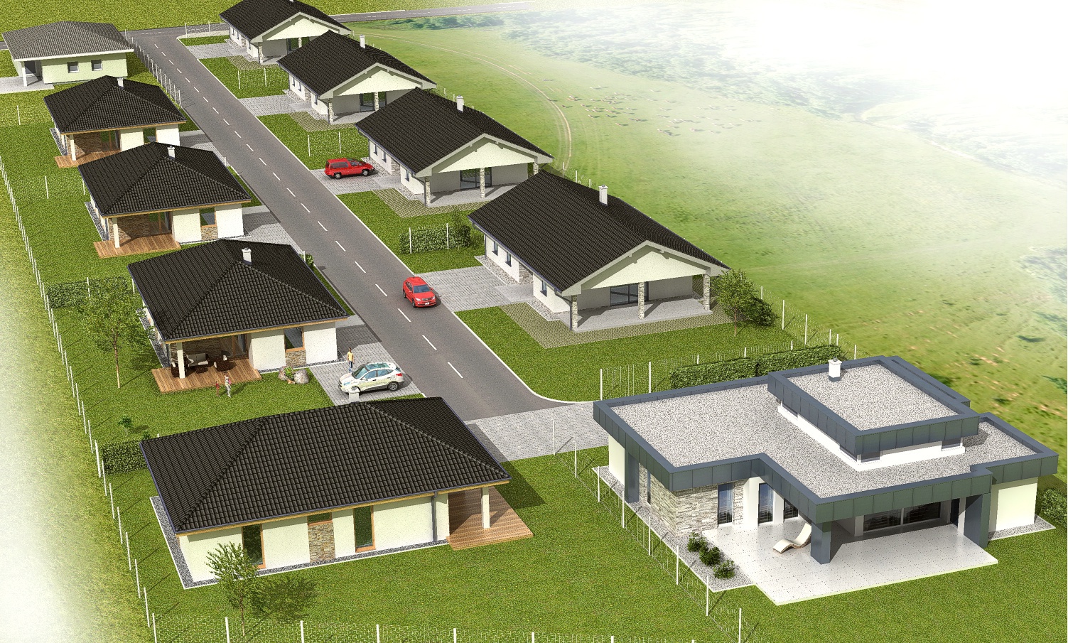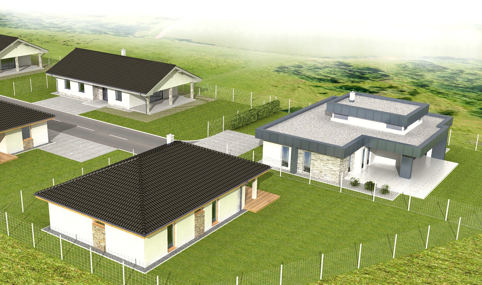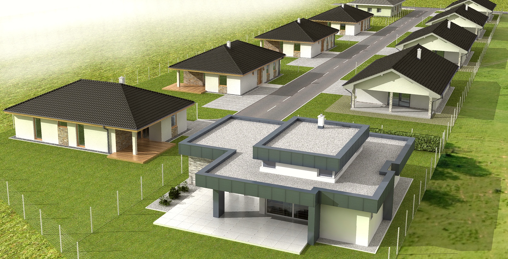 V rámci tohto projektu plánujeme výstavbu 11 tich rodinných domov v troch typoch vyhodovenia.